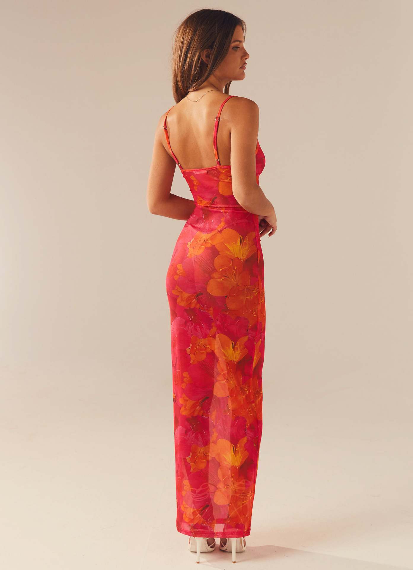 Features: Geometric pattern, Digital print, Bodycon fit, Fishtail hem, Strap design, Sleeveless, Long dress